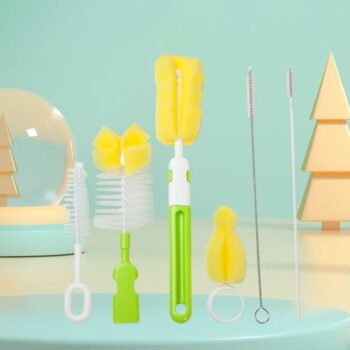 360° Rotating Baby Bottle & Pacifier Cleaning Brush Set with Straw Cleaner
