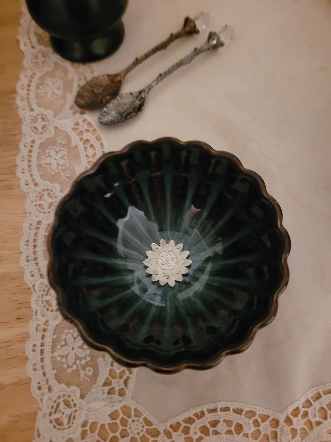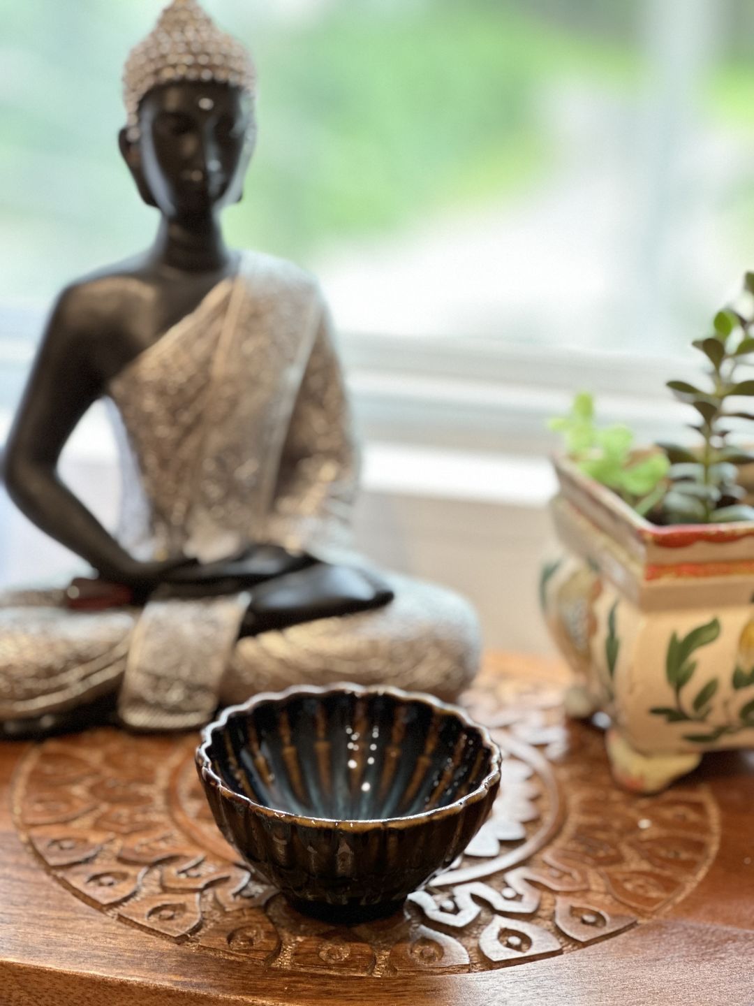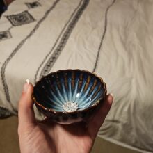 This tea bowl left me breathless when I saw it for the first time. While I do drink tea, the pair of cups I purchased will serve as decorative pieces in our home. They exude sheer elegance!