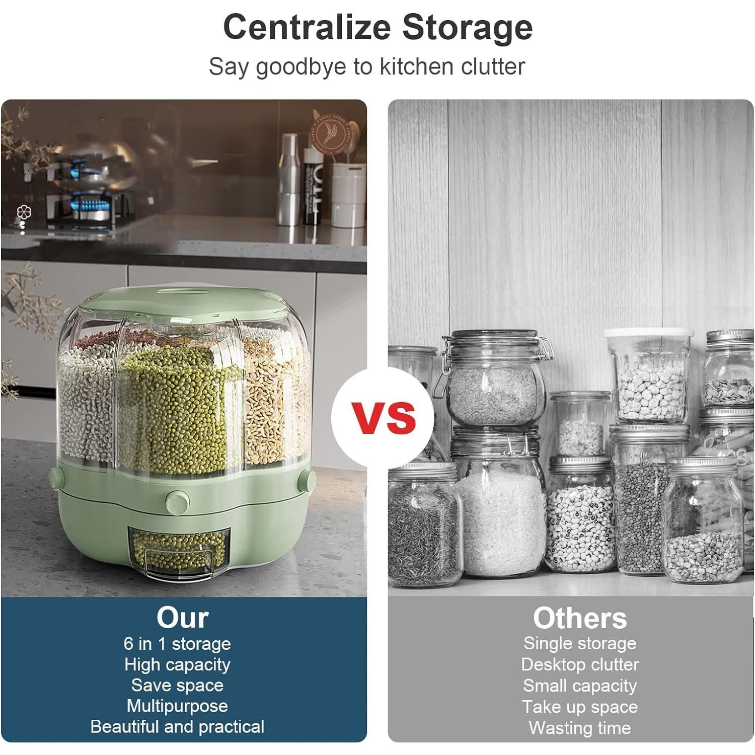 - 6-Grid Design: Conveniently store a variety of grains and dry foods.