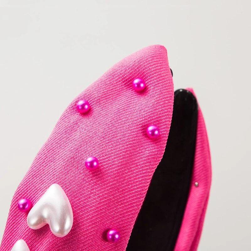 - Chic and Trendy Design: Featuring a knotted design inlaid with love-shaped pearls, this headband exudes a romantic and trendy vibe.