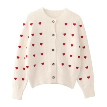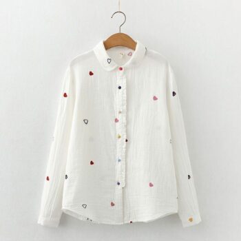 Love Heart Print Women’s Long Sleeve Cotton Blouse