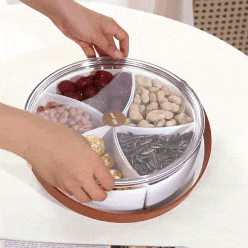 Our serving tray is not just another dish; it’s a versatile, stylish, and practical solution for all your hosting needs. Whether it’s a casual family gathering, a sophisticated party, or everyday use, this tray has you covered. The separate compartments allow for a variety of snacks without mixing flavors, and the lid ensures everything stays fresh until you’re ready to serve. The easy-to-carry handle and stackable design make it a breeze to use and store, while the durable materials ensure longevity and easy cleaning (note: not dishwasher safe).