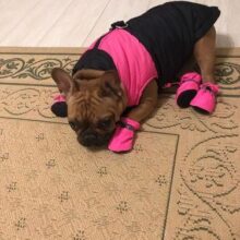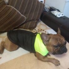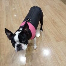 The vest is fantastic with top-notch quality. It fits my French Bulldog's wide shoulders nicely.