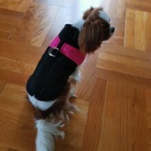 The jacket is a perfect fit for my Cavalier puppy in size M.